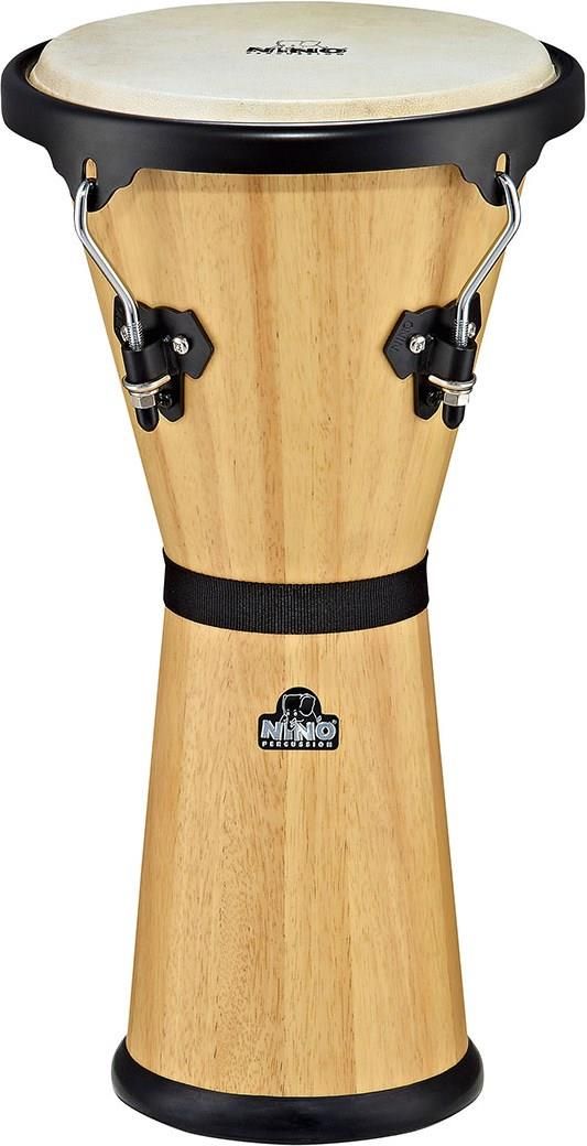 NINO Percussion NINO48NT Drewniany bęben djembe 10" Djembe to najpopularniejszy afrykański bęben. Nawet początkujący gracze są w stanie szybko wydobyć różne dźwięki z tego wspaniałego instrumentu. Drewniany bęben djembe NINO® ma średnicę 10" i wysokość 21" i jest idealnym bębnem dla dzieci w szkole podstawowej. Specyfikacja techniczna/cechy Zaokrąglone obręcze dla wygody gry Drewno kauczukowe (Hevea brasiliensis Muell.-Arg.) System strojenia Floatune Ręcznie selekcjonowane kozie główki Osprzęt malowany proszkowo na czarno Średnica: 10" Kolor: naturalny Wysokość: 21" Zawiera: Klucz do strojenia Kategoria wiekowa: 5+
