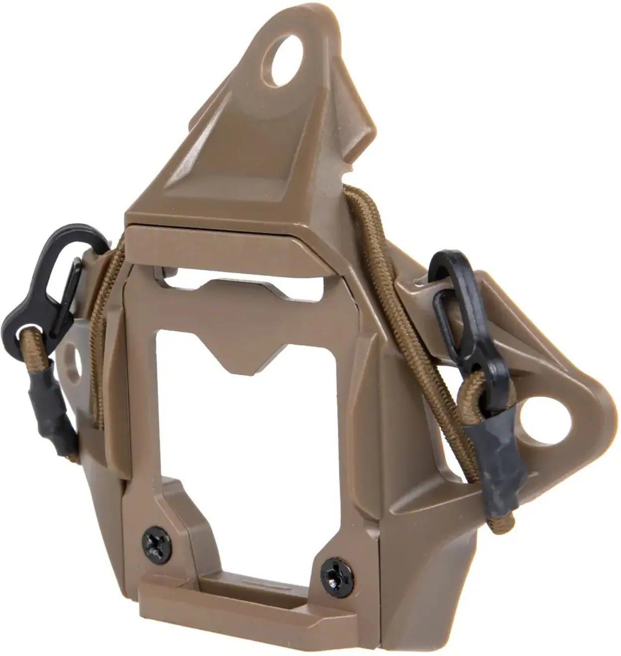 Montaż na noktowizje przeznaczony do mocowania na skorupie hełmu FAST High Cut. Wykonany z wytrzymałego tworzywa sztucznego w kolorze Tan. Montaż do hełmu odbywa się za pomocą śrub dołączonych w zestawie.