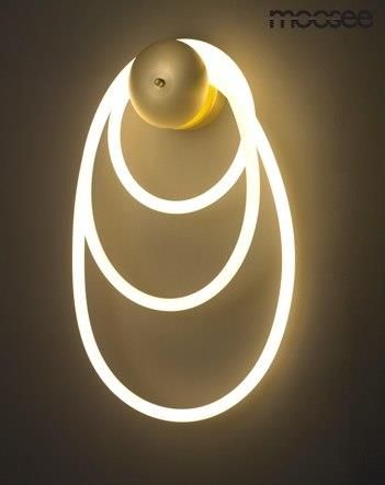 Kinkiet ledowy SERPIENTE złoty producent: Moosee Nowoczesny kinkiet w kolorze złotym. Źródłem światła są ledowe, elastyczne węże w oplocie z tkaniny, układające się w kształt świecących obręczy. Kinkiet łączy w sobie nowoczesny wygląd, modne rozwiązanie ledowe oraz elegancki wygląd w stylu glamour. …