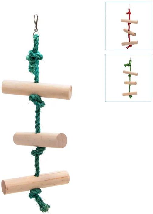 • WOODEN BIRD TOY THREE LADDERS WITH HEMP