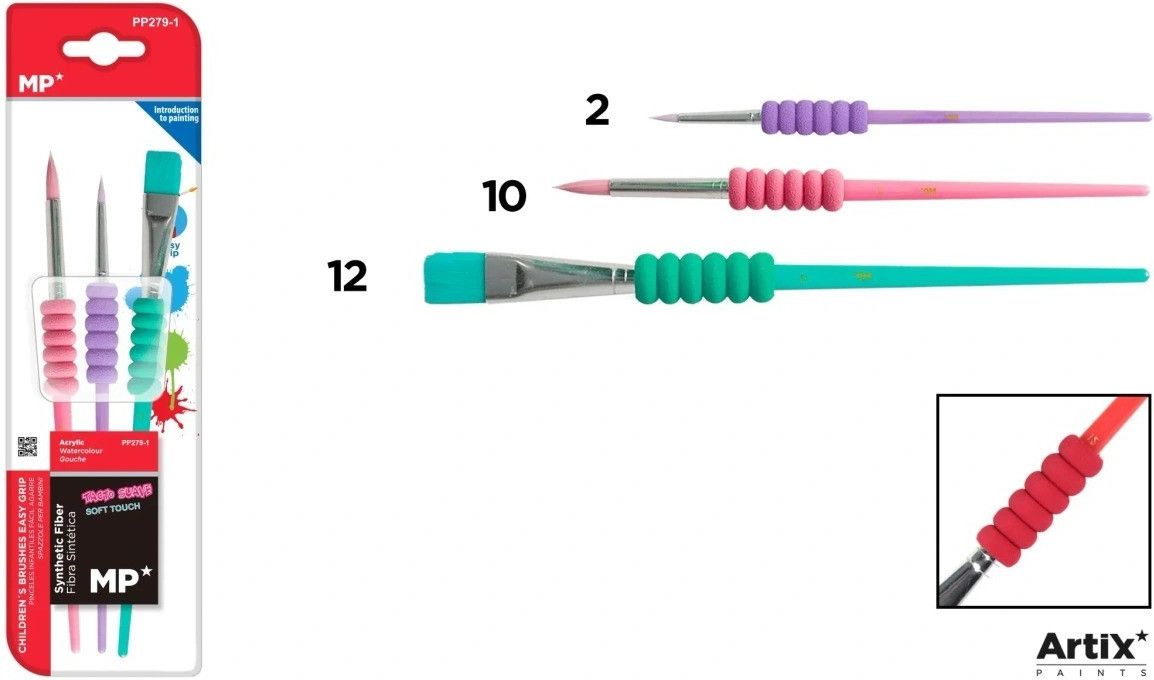 Pędzle Dla Dzieci Z Uchwytem Pianki Kolor 3Szt. Serock