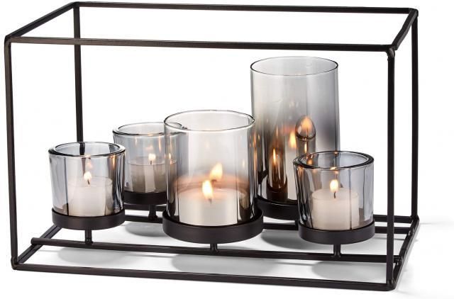 Świecznik York Philippi Podstawowe informacje Marka: Philippi Kod produktu: P119003 Kolor: czarny Materiał: stal, szkło Wymiary: 30,8 x 19 x 19 cm (dł. x gł. x wys.) Pojemność: KORZYŚCI • Imituje mini kominek. • Nastrojowe źródło światła. • Pasuje do różnych wnętrz. Świecznik York Philippi to oryginalna ozdoba do każdego salonu. Składa się ze stalowego stelaża malowanego na czarny kolor oraz 5 kloszy na świeczki (nie są dołączone). Wygląd świecznika nie jest przypadkowy – inspiracją do jego stworzenia była panorama Nowego Jorku z charakterystycznymi wieżowcami różnej wysokości. Reminiscencją amerykańskiego krajobrazu miejskiego jest również wykorzystanie częściowo lustrzanego szkła w kloszach (z odbijającego obraz materiału są wykonane okna budynków w Stanach Zjednoczonych). Świecznik pięknie rozprasza płomienie świec. Jeśli wybierzesz pachnące wkłady, możesz skorzystać z relaksujących właściwości zapachów. York Philippi sprawdzi się w roli mini kominka – daje nastrojowe światło i doskonale nadaje się np. na wieczór we dwoje.