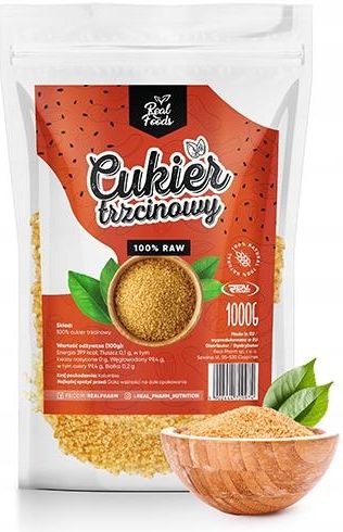 Real Foods - Cukier Trzcinowy 1000g Cukier trzcinowy to naturalny, nierafinowany cukier otrzymywany z trzciny cukrowej, bez oddzielania melasy i kryształków. Charakteryzuje się złotawą do ciemnobrązowej barwą oraz delikatnym, karmelowym aromatem. Obok cukru buraczanego należy do najpopularniejszych odmian cukrów jadalnych na świecie. Główne cechy: 100% naturalny cukier trzcinowy Nierafinowany – zachowuje naturalną melasę Złocisto-brązowy kolor i lekko karmelowy smak Uniwersalne zastosowanie w kuchni Duże opakowanie 1000 g Dla kogo? Dla osób poszukujących naturalnej alternatywy dla białego cukru. Idealny dla miłośników pieczenia oraz kuchni egzotycznej i tradycyjnej. Składniki cukier trzcinowy 100% Sposób użycia: Do słodzenia napojów (kawa, herbata) Do deserów, ciast i wypieków Do marynat, sosów i dań wytrawnych Według własnego uznania Uwagi Przechowywać w suchym i ciemnym miejscu Trzymać z dala od dzieci Chronić przed wilgocią