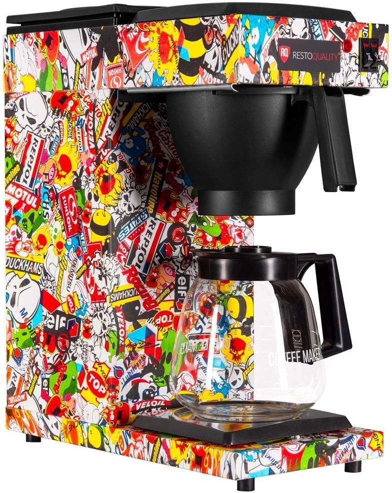 Ekspres przelewowy RQLT120 G1 | Graffity Collection | 2,4 kW | 144 filiżanki/h | dzbanek 1,8 l Resto Quality Ekspres przelewowy do kawy znajdzie idealne zastosowanie w biurze, małych obiektach gastronomicznych, czy nawet w domu Działanie urządzenia polega na powolnym przelewaniu gorącej wody przez zbiornik ze zmieloną kawą, dzięki czemu uzyskujemy w krótkim czasie napar o intensywnym aromacie i barwie Bardzo prosty w obsłudze Bardzo wydajny - w procesie zaparzania można przygotować na raz kilka filiżanek kawy Kompaktowy - zajmuje niewiele miejsca Rewelacyjny i unikalny design ze wzorem graffiti Solidna jakość wysokiej jakości komponenty Bez konieczności podłączania do sieci wodociągowej - ekspres ma własny zbiornik na wodę 1 płyta grzewcza oraz 1 strefa grzewcza do podtrzymywania temperatury Czas zaparzania: 6 minut Jeden szklany dzbanek o pojemności 1,8l w zestawie Akcesoria dodatkowe RQLTP-1 - szklany dzbanek 1,8l Parametry techniczne - Ekspres przelewowy Graffity Collection G1 moc 2,4 kW Resto Quality RQLT120 G1 Wymiary [mm]: 190×370×440 Moc [kW]: 2,4 Zasilanie [V]: 230 Wydajność [ilość filiżanek/h]: 144 Czas zaparzania [min.]: 6 Waga [kg]: 5,2