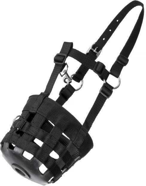 Kaganiec dla konia i kuca START parciano-gumowy NA RZEP czarny FULL Kaganiec ograniczający spożycie trawy na pastwisku, przeznaczony dla koni otyłych lub z innymi problemami zdrowotnymi. Wykonany jest z dobrej jakości materiałów i nie ogranicza przepływu powietrza. Jest dostępny w trzech rozmiarach: full, cob i pony, z możliwością regulacji na paskach policzkowych, podgardle i części łączącej podgardle z kagańcem. Pasek potyliczny zapinany jest na rzep, a podgardle na prosty i wygodny karabińczyk. Zawiera kółko D-ring do mocowania uwiązu. Kolor: czarny Rozmiar: FULL Producent: Start