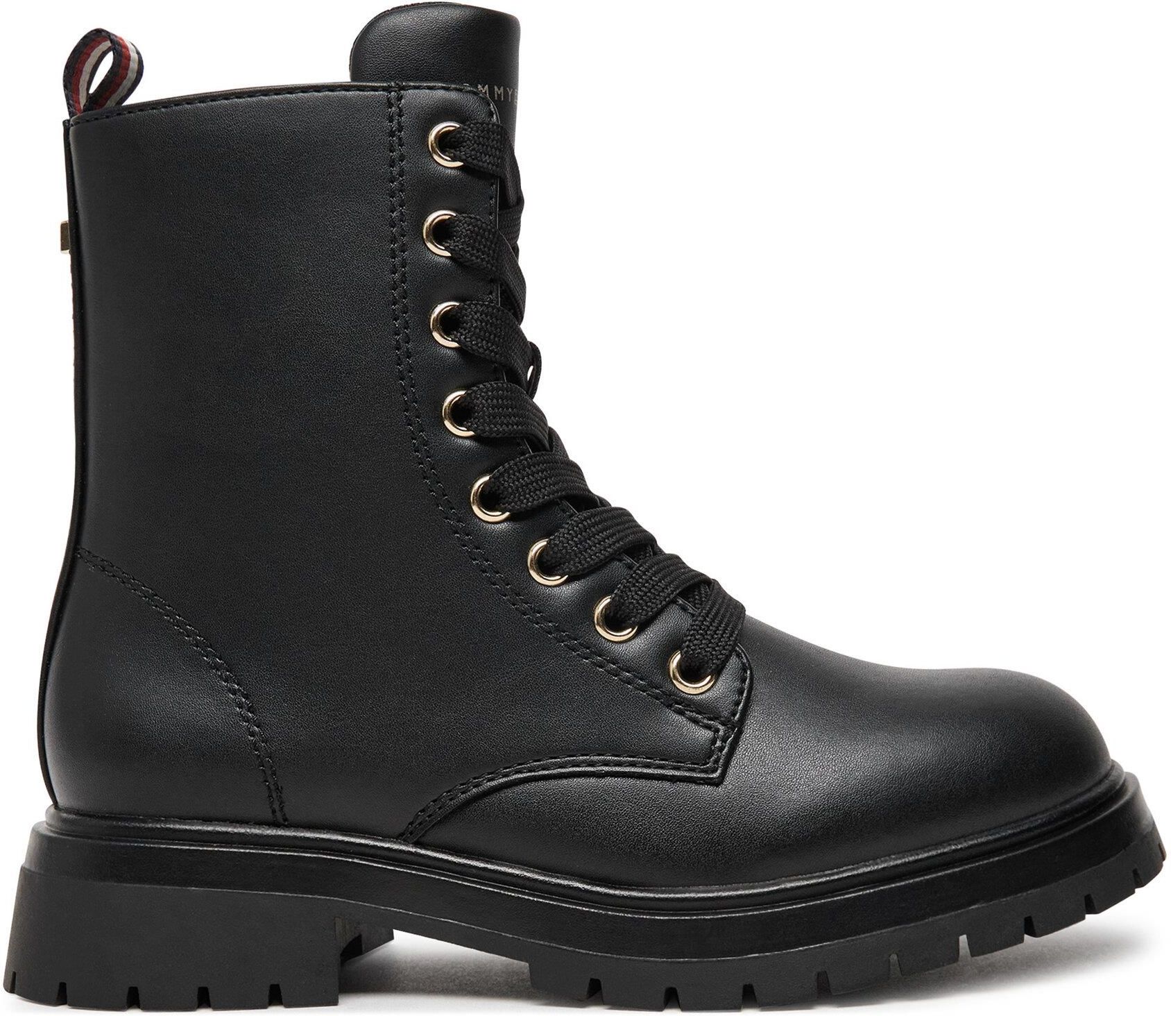 Dodaj do garderoby swojej pociechy stylowe i wygodne trapery od marki Tommy Hilfiger! Wykonane z imitacji skóry, te buty stanowią połączenie modnego designu i praktyczności, idealne na co dzień. Dzięki sznurówkom z materiału łatwo dopasować je do stopy, a miękka wkładka z materiału zapewnia komfort podczas długiego noszenia. Trapery to doskonały wybór na chłodniejsze dni, oferując jednocześnie trwałość i modny wygląd. Wybierz markę Tommy Hilfiger i podkreśl wyjątkowy styl swojej dziewczynki!