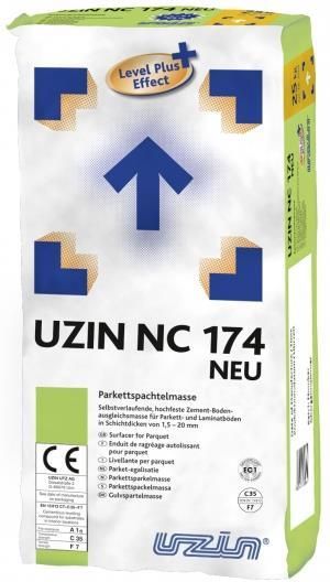 UZIN NC 174 Masa szpachlowa pod parkiet Szpachlowanie przed przystąpieniem do układania parkietu Cementowa masa samorozlewna o bardzo niskiej emisyjności przeznaczona do szpachlowania podłóg przed układaniem parkietu i paneli laminowanych w zakresie grubości od 1,5 do 20 mm Niewielkie naprężenia …