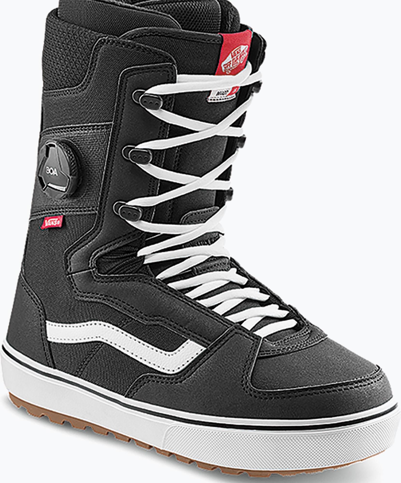 Buty snowboardowe męskie Vans Invado OG black/white zaprojektowano z myślą o pełnej kontroli i komforcie podczas jazdy all mountain oraz freestyle. Model ten łączy zaawansowane technologie amortyzujące z precyzyjnym systemem dopasowania, co przekłada się na optymalne wsparcie i pewność ruchu na stoku. Systemy amortyzacji i komfortu Zastosowana w modelu Invado OG pianka V1 POPCUSH™ gwarantuje skuteczną absorpcję wstrząsów oraz wysoki poziom wygody podczas dynamicznej jazdy. Obecność wkładki anatomicznej oraz wyściółki V1 UltraCush™ przekłada się na odczuwalną miękkość pod stopą i efektywną ochronę przed przeciążeniami. But wewnętrzny zapewnia możliwość indywidualnego formowania, co zwiększa dopasowanie i minimalizuje punkty ucisku. Zaawansowany system sznurowania i BOA® Fit System Model Vans Invado OG wyposażono w efektywne połączenie klasycznego sznurowania oraz systemu BOA® Fit System, co pozwala na precyzyjną regulację napięcia w całej strefie cholewki. Rozwiązanie to umożliwia szybkie i łatwe dopasowanie obuwia bez względu na warunki. Zastosowana technologia PLEASURECUFF™ wspiera komfort wokół łydki, zapewniając odpowiednią elastyczność i trzymanie stopy nawet podczas agresywnych manewrów. Przyczepność oraz kontrola na śniegu Podeszwa V1 Waffle Lug odpowiada za wysoką przyczepność na zróżnicowanych powierzchniach śnieżnych, istotnie zwiększając kontrolę nad deską w trakcie jazdy. Zrównoważony flex o wartości od 4 do 6 w skali twardości umożliwia wszechstronne zastosowanie – zarówno podczas jazdy po przygotowanych trasach, jak i wykonywania technicznych ewolucji w snowparku. Tak zaprojektowana konstrukcja sprzyja swobodzie ruchu oraz maksymalizuje bezpieczeństwo podczas użytkowania. Buty snowboardowe męskie Vans Invado OG black/white - cechy: Dedykowane do jazdy all mountain oraz freestyle; Pianka V1 POPCUSH™ zapewniająca wydajną amortyzację podczas lądowań; But wewnętrzny z pianką V1 UltraCush™ o wysokim komforcie; Możliwość indywidualnego formowania buta wewnętrznego dla lepszego dopasowania; System BOA® Fit umożliwiający szybkie i precyzyjne dopasowanie; Klasyczne sznurowanie zapewniające dodatkową kontrolę nad napięciem; Technologia PLEASURECUFF™ poprawiająca komfort wokół łydki; Podeszwa V1 Waffle Lug oferująca optymalną przyczepność na śniegu; Miękki do średniego flexu, zwiększający wszechstronność zastosowań; Konstrukcja wspierająca naturalny ruch stopy podczas jazdy; Wysoki poziom kontroli i stabilności na desce snowboardowej; Rozwiązania zaprojektowane dla komfortu podczas całodziennego użytkowania; Męski model zoptymalizowany pod kątem ergonomii i wytrzymałości.