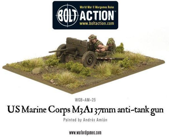 Zestaw proponowany przez firmę WARLORD GAMES zawiera model do sklejania i samodzielnego pomalowania w skali 1:56 (28mm). Oferowany model nadaje się do gry bitewnej BOLT ACTION. Wprowadzone w 1940 roku działo M3 kal. 37 mm stało się standardowym amerykańskim działem przeciwpancernym, dzięki swoim rozmiarom umożliwiającym holowanie go przez jeepa. Ciągły rozwój niemieckich czołgów szybko sprawił, że działo 37 mm stało się nieskuteczne i do 1943 roku było stopniowo zastępowane na teatrach europejskich i śródziemnomorskich przez potężniejsze, opracowane przez Brytyjczyków działo M1 kal. 57 mm. Na Pacyfiku, gdzie zagrożenie ze strony japońskich czołgów było mniejsze, działo M3 było nadal skuteczne, a jego niewielka masa ułatwiała poruszanie się w trudnym terenie. Po raz pierwszy zostało użyte w akcji podczas obrony Filipin w grudniu 1941 roku, a łatwość obsługi sprawiła, że działo pozostało na wyposażeniu Korpusu Piechoty Morskiej i niektórych jednostek armii na Pacyfiku do końca wojny. W grach Bolt Action może być używane w plutonach artylerii i jest lekkim działem przeciwpancernym, które może być holowane przez większość pojazdów, w tym jeepy. Zawartość: Jedno metalowe działo kal. 75 mm 3 metalowe figurki załogi Korpusu Piechoty Morskiej USA
