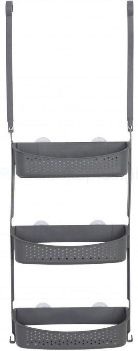 Półka pod prysznic w kolorze szarym, która pozwoli na znaczną oszczędność miejsca. Posiada trzy profilowane, plastikowe koszyki oraz dwa haczyki, które znacznie zwiększają jej możliwości. Półki wyposażone są w otwory, które zapewniają swobodne ociekanie wody. Dzięki elastycznym, gumowym ramionom …