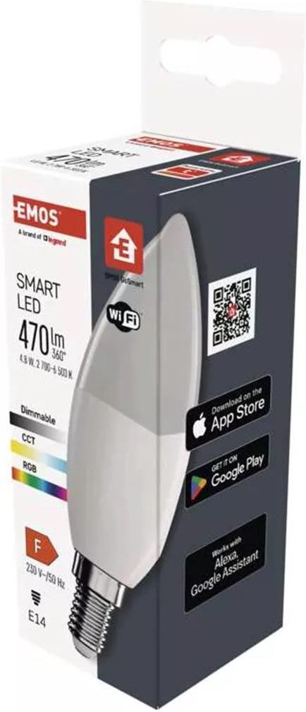 ŻARÓWKA LED GOSMART E14 4.8W 470LM RGB 180° ŚWIECZKA WI-FI ZQW322R EMOS Serock