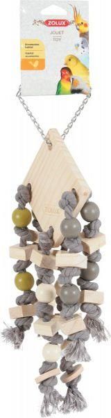 Zabawka z 6 sznurami dla ptakówZabawka do zawieszenia to idealny dodatek do klatki dla ptaków. Do jej produkcji użyto elementów drewnianych, kolorowych sznurków oraz koralików. Zabawka posiada metalowy łańcuszek z praktycznym karabińczykiem, dzięki czemu można ją przymocować do prętów klatki. …