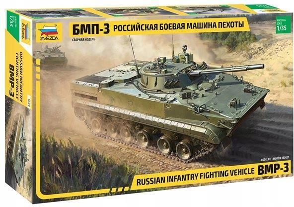 Model Russian infantry fighting vehicle BMP-3 Zvezda - nr 3649 - scale 1:35 Plastikowy model rosyjskiego bojowego wozu piechoty BMP-3 do sklejania i pomalowania w skali 1/35 z firmy Zvezda nr katalogowy 3649. Klej modelarski do plastiku, farby oraz ewentualnie narzędzia należy dokupić dodatkowo - …