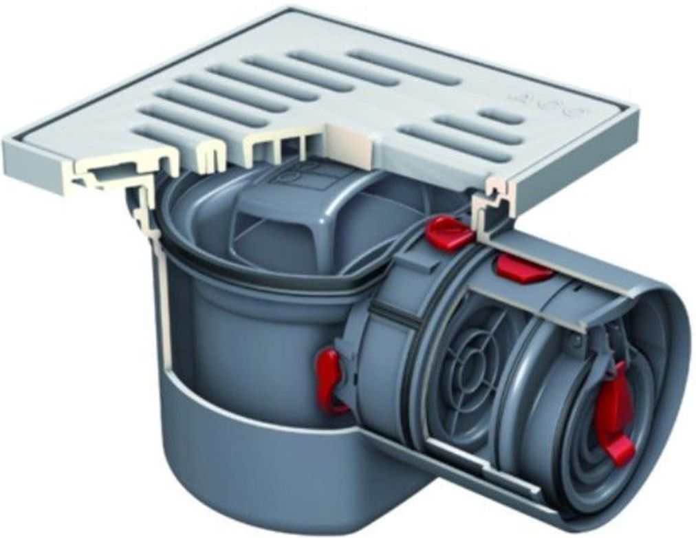 ACO odpływ piwniczny Junior Typ 5 DN 100 z rusztem szczelinowym, idealny do renowacji. Kompaktowy, z tworzywa sztucznego. Przepływ 1,4 l/s, beznarzędziowy montaż i klapa przeciwzalewowa.