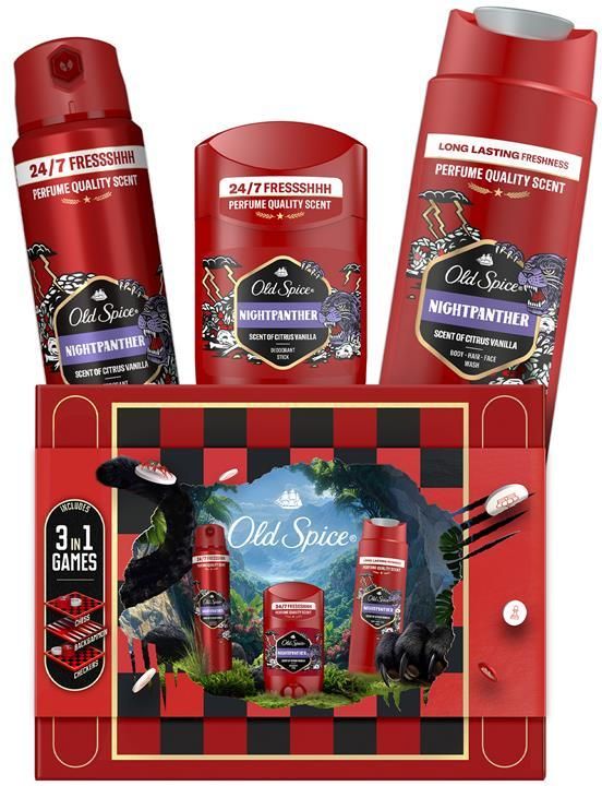 Old Spice Nightpanther Gamebox, , Zestawy do ciała dla mężczyzn dla mężczyzn, Spraw radość sobie lub swoim bliskim zestawem męskich kosmetyków Old Spice Nightpanther Gamebox pielęgnacyjnych. Ucieszy on każdego nowoczesnego i dbającego o swój wygląd mężczyznę. Zawartość zestawu: Old Spice …