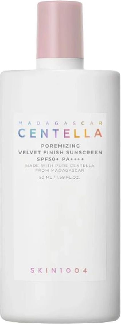 Skin1004 Madagascar Centella Poremizing Velvet Finish SunscreenKrem Przeciwsłoneczny SPF 50+ PA++++50mlPoremizing Velvet Finish – Lekki krem przeciwsłoneczny, który nie tylko zapewnia silną ochronę UV, ale także naturalnie maskuje niedoskonałości. Dzięki zawartości mikroporowatego pudru oraz bazy pod makijaż idealnie przylega do skóry zakrywając rozszerzone pory oraz nierówności, pozostawiając skórę gładką nawet do 12 godzin. Neutralny beżowy odcień idealnie dopasowuje się do każdego typu cery, nie bieląc jej i podkreślając jej naturalny koloryt. Połączenie pudru sferycznego z odpornym na działanie pudrem utrwalającym tworzy matową, przyjemną w dotyku skórę, która nie wyświeca się. Wzbogacony o wysokiej jakości ekstrakt z wąkroty azjatyckiej. Krem łagodzi podrażnienia, wzmacnia barierę ochronną skóry oraz wspiera jej naturalną regenerację. Odpowiedni dla cery tłustej, mieszanej oraz problematycznej.Substancje aktywne zawarte w produkcie: Ekstrakt z wąkroty azjatyckiej – działa łagodząco, kojąco oraz regenerująco; Niacynamid – działa wygładzająco, rozjaśniająco oraz zmniejsza widoczność porów; Olej z nasion żmijowca babkowatego – odżywia skórę, chroni przed utratą wilgoci; Mikroporowaty puderorazpolimery silikonowe – wygładzają cerę, minimalizują widoczność porów i niedoskonałości, zapewniają matowe jedwabiste wykończenie; Adenozyna – ma działanie silnie liftingujące, regenerujące i nawilżające. Działanie: chroni przed promieniowaniem; działa łagodząco i regenerująco; minimalizuje widoczność porów i niedoskonałości; koi i nawilża. Sposób użycia: Na oczyszczoną skórę twarzy nanieś odpowiednią ilość kremu i równomiernie rozprowadź.Skład: Water, Zinc Oxide, Caprylyl Methicone, Butyloctyl Salicylate, C9-12 Alkane, Dipropylene Glycol, Propyl- heptyl Caprylate, Polyglyceryl-3 Polydimethylsiloxyethyl Di- methicone, Niacinamide, Methyl Trimethicone, Dicaprylyl Ether, Titanium Dioxide, C12-15 Alkyl Benzoate, Methyl Methacrylate Crosspolymer, Vinyl Dimethicone/Methicone Silsesquioxane Crosspolymer, Disteardimonium Hectorite, Magnesium Sulfate, Triethoxycaprylylsilane, Sodium Potassium Aluminum Silicate, 1,2-Hexanediol, Polyglyceryl-2 Dipolyhydroxystearate, Lauryl Polyglyceryl-3 Polydimethylsiloxyethyl Dimethicone, Dime- thicone/Vinyl Dimethicone Crosspolymer, Octyldodecanol, Silica, Polyhydroxystearic Acid, Dimethiconol, Trisiloxane, Iron Oxides (CI 77492), Dibutyl Adipate, Poly C10-30 Alkyl Acrylate, Caprylyl Glycol, Glyceryl Caprylate, Neopentyl Glycol Diethy- lhexanoate, Ethylhexylglycerin, Aluminum Hydroxide, Iron Oxides (CI 77491), Adenosine, Echium Plantagineum Seed Oil, Polymethyl Methacrylate, Helianthus Annuus (Sunflower) Seed Oil Unsaponifiables, Iron Oxides (CI 77499), Tocopherol, Car- diospermum Halicacabum Flower/Leaf/Vine Extract, Centella Asiatica Extract(1 ppm), Sea Salt, Saccharomyces Ferment Filtrate, Propanediol, Glycerin, Aloe Barbadensis Leaf Extract, Butylene Glycol, Bombax Malabaricum Flower Extract