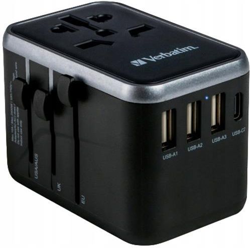 Verbatim to jeden z światowych liderów nowoczesnych technologii. Marka znana z najwyższej jakości i niezawodności niezbędnych w zapisywaniu i archiwizowaniu najcenniejszych danych. Od założenia w roku 1969 firma Verbatim wpływa na rozwój technologii przechowywania danych. W języku łacińskim „verbatim” znaczy „słowo w słowo”, nazwa ta jest używana od momentu powstania firmy w celu podkreślenia wagi dokładnego i bezbłędnego zapisu danych. Produkty marki Verbatim przechodzą wieloetapową kontrolę jakości, co przekłada się na ich niezawodność. Globalny adapter podróżny Uniwersalnego adaptera podróżnego Verbatim można używać w ponad 180 krajach – zabierz go ze sobą, a nigdy nie braknie Ci mocy. Ten adapter wtyczek typu globalny-globalny umożliwia podłączanie urządzeń do dowolnego lokalnego źródła zasilania na całym świecie. Dzięki niemu możesz spokojnie ładować swoje urządzenia wymagające zasilania, takie jak laptopy i akumulatory do aparatów. Porty USB-C i USB-A u dołu umożliwiają ładowanie wszystkich urządzeń USB, w tym smartfonów, głośników Bluetooth, tabletów, powerbanków i czytników e-booków. Superszybkie ładowanie 6-w-1 Kompaktowy i zaawansowany, uniwersalny adapter podróżny umożliwia jednoczesne ładowanie sześciu urządzeń przez gniazdo zasilania AC oraz dwa porty USB-A i trzy porty USB-C. Port USB-C o wysokiej mocy obsługuje funkcję 61W Power Delivery (PD) i Quick Charge (QC) 3.0 – adapter zapewnia superszybkie ładowanie. Wystarczy pchnąć suwaki umieszczone z boku adaptera, aby odkryć trzy najpopularniejsze wtyczki międzynarodowe – UE, UK i USA – i obrócić styki, aby skorzystać z gniazd w Australii lub Chinach. Kompaktowe i bezpieczne urządzenie Certyfikaty CE, UKCA, FCC i ROHS oraz wysokiej jakości ognioodporny materiał poliwęglanowy – ten adapter uniwersalny jest idealnym urządzeniem do codziennego użytku w podróży. Adapter jest wyposażony w zaślepkę zapewniającą bezpieczeństwo dzieci, którą można otworzyć tylko z siłą ponad 75N (7,5 kg) na otwór, a także w bezpiecznik zgodny z normą BS1362 (zapasowy bezpiecznik jest dołączony), co zapewnia 100% spokoju ducha, niezależnie od tego, gdzie jesteś. Szczegóły produktu: Adapter globalny-globalny (do stosowania w ponad 180 krajach) Obsługa PD 61W i QC 3.0 2 x port USB-C 3 x port USB-A Obsługuje jednoczesne ładowanie sześciu urządzeń. Zawiera zapasowy bezpiecznik Funkcja zaślepki ochronnej zapobiega wkładaniu obcych przedmiotów do gniazda oraz zapewnia bezpieczeństwo dzieci Materiał ognioodporny Kompaktowe rozmiary – niewielki rozmiar ułatwia przenoszenie 2-letnia ograniczona gwarancja firmy Verbatim na cykl życia produktu Wymagania systemowe: Rodzaje wtyczek pasujące do adaptera: typ A, typ B, typ C, typ E, typ F, typ G, typ I, typ J, typ L, typ N Należy pamiętać, że następujące wtyczki nie są zgodne: typ D, typ H, typ K, typ M, typ O Rodzaje gniazd, do których można podłączyć adapter podróżny: typ A, typ B, typ C, typ D, typ E, typ F, typ G, typ H, typ I, typ J, typ K, typ L, typ M, typ N, typ O Zobacz przewodnik krajowy, aby uzyskać pełne informacje o zgodności Adapter podróżny jest dostosowany do użytku z większością urządzeń elektronicznych, do 2500 W przy napięciu 250 V oraz 1000 W przy napięciu 100 V. Adapter podróżny jest zgodny z większością urządzeń USB Dane techniczne Adapter globalny-globalny (do stosowania w ponad 180 krajach) – patrz przewodnik krajowy Formaty wtyczek: UE, UK, USA/Japonia, AUS 1 x port USB-C Power Delivery 61W i Quick Charge 3.0: 18W 1 x port USB-C: maks. 12 W 3 x port USB-A: maks. 12 W Obsługuje jednoczesne ładowanie 6 urządzeń Ognioodporny materiał poliwęglanowy Certyfikowany bezpiecznik + zapas Zaślepka zapewniająca bezpieczeństwo dzieci (można otworzyć tylko z siłą ponad 75N (7,5 kg) na otwór) Wskaźnik LED stanu Wejście AC: 100–250 V, 50/60 Hz Napięcie znamionowe: 100–250 V AC 10 A maks., 2500 W maks. USB-C1 PD/QC: 5,0 V 3,0 A 15,0 W, 9,0 V 3,0 A 27,0 W, 12,0 V 3,0A 36,0 W, 15,0 V 3,0 A 45,0 W, 20,3 V 3,0 A 61,0 W USB-C2: 5,0 V 2,4 A 12,0 W USB-A1/2/3: 5,0 V 2,4 A 12,0 W Bezpiecznik: zgodny z normą BS1362 Materiał: ognioodporny poliwęglan Wymiary: 75 mm x 50 mm x 54 mm Waga: 180 g Temperatura podczas pracy: 0–35°C NIE jest to konwerter napięcia Urządzenie jest przeznaczone wyłącznie do użytku wewnątrz pomieszcze Zawartość opakowania: Verbatim UTA-04 Uniwersalny adapter podróżny z 1. portem USB-C PD 61W i QC 3.0 / 1. portem USB-C / 3. portami USB-A Skrócona instrukcja obsługi