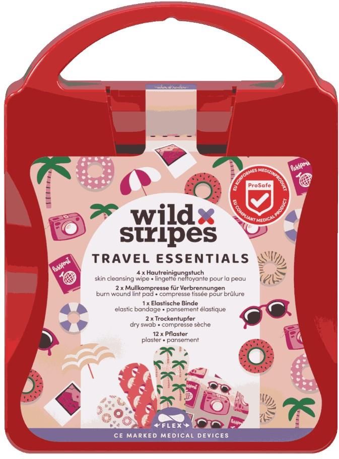 Wild Stripes First Aid Kit Travel Zestaw, 1 szt.Przeżyj beztroskie przygody z zestawem Wild Stripes Travel Essentials Set, który został stworzony specjalnie z myślą o Twoich podróżach. Niezależnie od tego, czy planujesz krótki weekendowy wypad, czy podróżujesz po całym świecie, ten zestaw ma wszystko, czego potrzebujesz w nieoczekiwanych sytuacjach. Zestaw zawiera plastry w 3 różnych rozmiarach, 2 opatrunki na oparzenia, bandaż elastyczny, gaziki do dezynfekcji i suche gaziki.wszystko zapakowan
