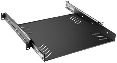 ADAM HALL 87556 ADAM HALL 87556 Półka, wanna rack 19’’, 1U, z wysuwanymi szynami. Półka rack 19’’, 1 U, wysuwana na bocznych szynach, które są zamontowane na wspornikach z regulacją z przodu i z tyłu. Dzięki temu półka może być przymocowana także od tyłu w szafach rack o różnej głębokości. Powierzchnia półki: szer. 412 mm, gł. 380 mm Głębokość montażowa: Regulacja 360-480 mm Specyfikacja: Rodzaj produktu: Półki doczołowe do szaf rack 19" Materiał: stal Powierzchnia: Powlekane proszkowo Kolor: Czarny Wysokość: 1 U Szerokość: 435 mm Głębokość: 360–480 mm Grubość materiału: 1,6 mm Maksymalna obciążalność: 25 kg Waga: 3,68 kg