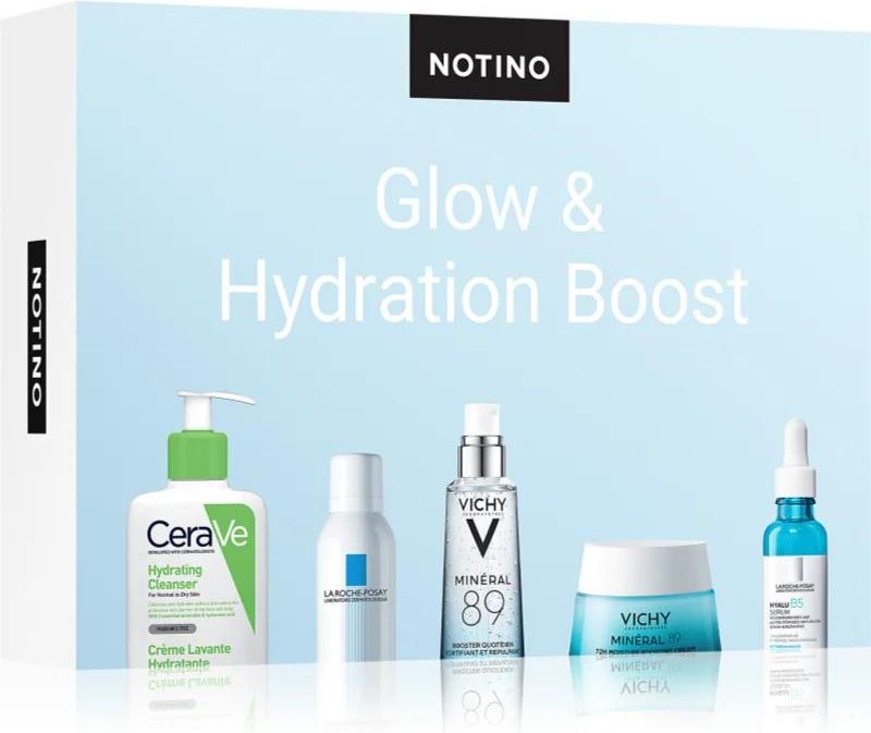 Beauty Discovery Box Notino XL – Glow & Hydration Boost, , Kosmetyki dla dzieci do ciała dla kobiet, Wszystko dla ładnie wyglądającej skóry w jednym opakowaniu. Zestaw kosmetyków Beauty Discovery Box Notino XL – Glow & Hydration Boost zawiera nie jeden, ale kilka produktów, które pomogą ułożyć lub wzbogacić codzienną rutynę kosmetyczną sprawiając radość Tobie lub Twoim bliskim. Zawartość zestawu: CeraVe Cleansers Hydrating Cleanser emulsja oczyszczająca o działaniu nawilżającym 20 ml La Roche-Posay Eau Thermale woda termalna 50 ml Vichy Minéral 89 wzmacniający i wypełniający booster hialuronowy 10 ml La Roche-Posay Hyalu B5 serum przeciwzmarszczkowe z kwasem hialuronowym 10 ml Vichy Minéral 89 krem nawilżający do twarzy 72 godz. 15 ml Właściwości: dla intensywnego nawilżenia dla uzyskania efektu pięknie wygładzonej i nawilżonej skóry kompleksowa pielęgnacja do codziennego stosowania
