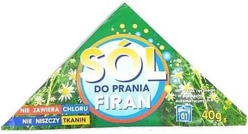Biel i Kolor Sól Do Prania Firan 40G Sól do prania firanek i zasłon. Skutecznie usuwa brud, kurz oraz żółty nalot i zapach nikotyny. Nadaje im efekt śnieżnej bieli i przyjemny zapach. Sól zaleca się stosować z proszkiem do prania.