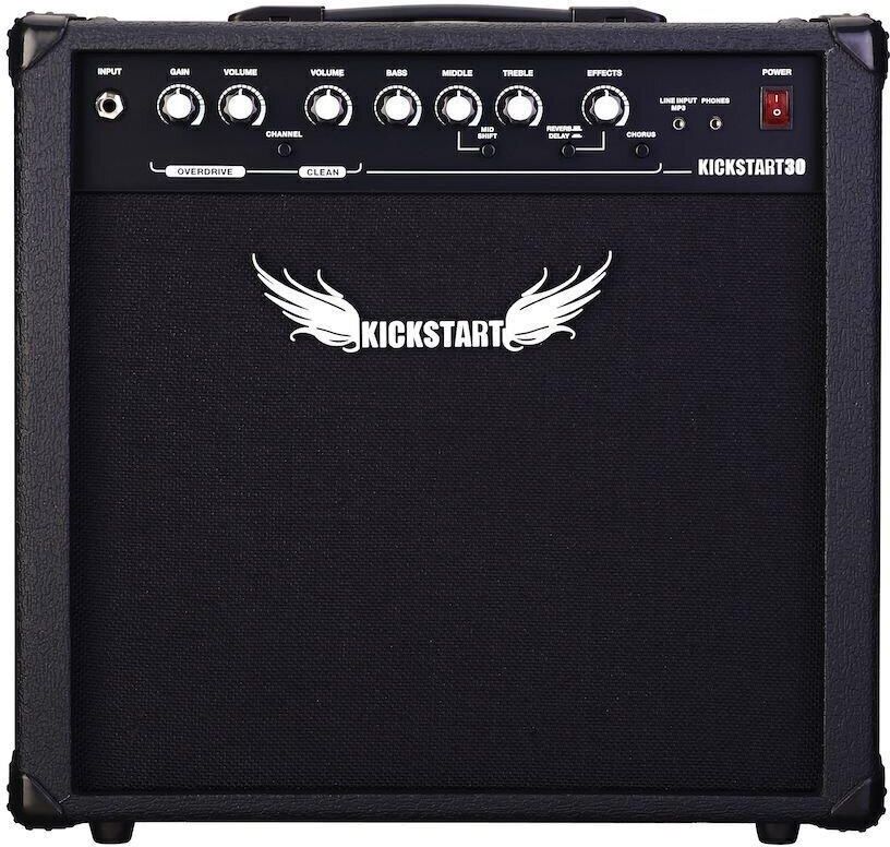 To jest automatyczne tłumaczenie wygenerowane przez software:Wzmacniacz do gitary elektrycznej Kickstart 30B, teraz wyposażony w funkcję odtwarzania Bluetooth, która umożliwia strumieniowe przesyłanie muzyki z urządzenia obsługującego technologię Bluetooth i granie razem. Nowy, odświeżony wygląd z chłodną srebrną tkaniną grilla i czarną lamówką, nadaje klasyczny wygląd z unowocześnionym współczesnym akcentem. Carlsbro projektuje wzmacniacze gitarowe od 1959 roku. Nowa seria wzmacniaczy Kickstart, od ultrakompaktowego 10W do wyposażonego w funkcje Kickstart 100, kontynuuje dziedzictwo Carlsbro, oferując solidne, świetnie brzmiące wzmacniacze gitarowe. 2 kanały (czyste i overdrive) 3-pasmowy korektor ze średnim przesunięciem Wiosenne efekty pogłosu/delay i chorus Pętla FX z kontrolą poziomu Łączność odtwarzania Bluetooth Gniazdo wejścia liniowego 3,5 mm Wyjście słuchawkowe 3,5 mm Gniazdo wyjścia liniowego Gniazdo przełącznika nożnego (wybór kanału)