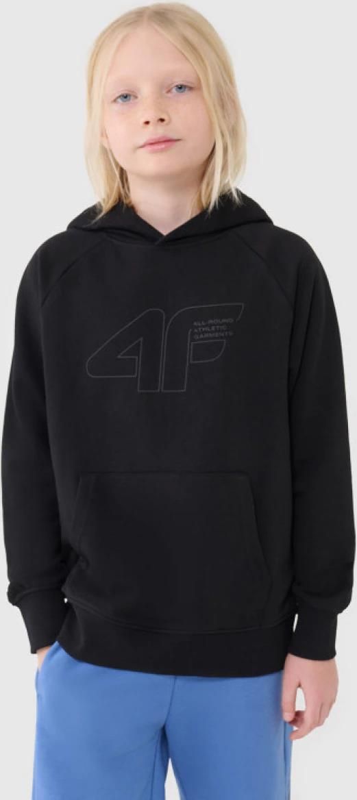 Chłopięca bluza dresowa nierozpinana z kapturem 4F 4FJWSS25TSWSM1712 - czarna Siechnice
