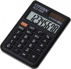 Kalkulator kieszonkowy Citizen SLD-100N. Posiada 8 pozycyjny, bardzo czytelny wyświetlacz oraz praktyczne etui z miękkiego tworzywa, które chroni kalkulator przed uszkodzeniem. Doskonale sprawdzi się w szkole na zajęciach, jak i w podróży. Parametry: - ilość wyświetlanych cyfr: 8pozycji, - ilość wyświetlanych linii: 1, - styl wyświetlacza: wyrównany, - pierwiastek kwadratowy: tak, - przycisk procenty: tak, - podwójne zero: nie, - zaokrąglenie: nie, - zmiana znaku: nie, - obliczanie marży: nie, - obliczenia podatkowe: nie, - przeliczania walut: nie, - wyznaczenie ilości miejsc po przecinku: nie, - sprawdzanie i korekta: nie, - pamięć: trzy przyciski pamięci, - automatyczne wyłączenie: tak, - suma łączna: nie, - zasilanie baterią: tak, - zasilanie słoneczne: tak, - długość: 90 mm, - szerokość: 60 mm, - wysokość: 11 mm.