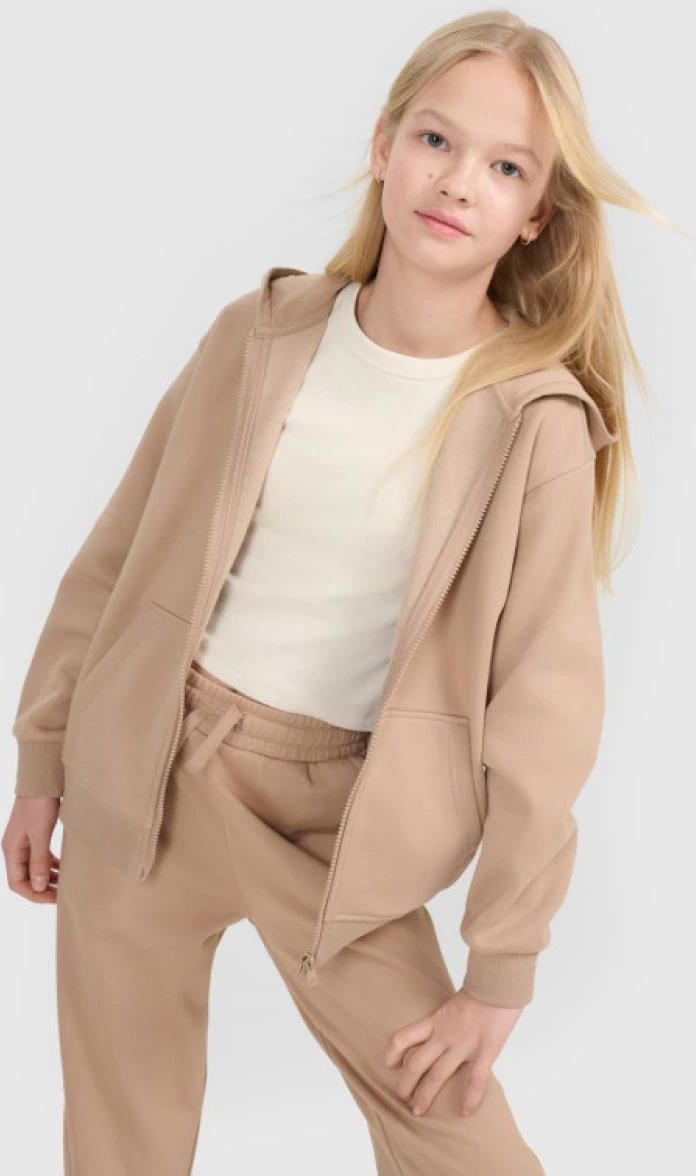 Dziewczęca bluza dresowa z kapturem rozpinana 4F 4FJWSS25TSWSF1853 - beżowa Siechnice