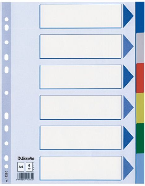 Opinie EsseltePrzekładki do segregatora A4 PP plastikowe 6 kart. 15260 (ETB178B) Siechnice