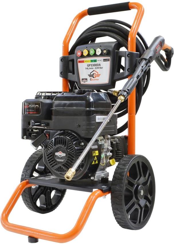 Wysokociśnieniowa myjka zimnowodna z silnikiem spalinowym, paliwo: benzyna, silnik Briggs & Stratton 6,3 PS 220 bar / 840 l/h Zimnowodne myjki ciśnieniowe z silnikiem spalinowym to wydajne urządzenia, które możemy używać wszędzie tam, gdzie nie ma dostępu do prądu. Spełniając rygorystyczne wytyczne produkcyjne UE, myjki ciśnieniowe Gaspper są trwałe. Każda maszyna jest poddawana testom jakości, aby przed wysyłką upewnić się, że wszystkie nasze rygorystyczne wewnętrzne wytyczne zostały spełnione. Każda część myjki ciśnieniowej Gaspper została starannie zaprojektowana, aby bezawaryjnie wytrzymać najcięższe warunki. Profesjonalne maszyny Gaspper są zbudowane tak, aby były trwałe. Są wyposażone w funkcje potrzebne profesjonalistom do wykonywania najcięższych zadań – dzień po dniu. Opis Dzięki myjce wysokociśnieniowej klasy premium Gaspper GP3300DA czyszczenie jest łatwe i przyjemne. Dzięki ciśnieniu roboczemu 220 barów i przepływowi wody 14 l na minutę ta myjka wysokociśnieniowa nadaje się do czyszczenia najgorszych zabrudzeń. Myjka wysokociśnieniowa wyposażona jest w benzynowy silnik OHV Briggs & Stratton z regulacją prędkości obrotowej, systemem zabezpieczającym silnik przed niskim poziomem oleju oraz wydajną pompą z regulowaną regulacją ciśnienia wody, co gwarantuje większy komfort użytkowania. Cechy i zalety solidna i lekka stalowa konstrukcja zapewniająca łatwą obsługę, zabezpieczona przed korozją rama wykonana z wytrzymałej rury stalowej ocynkowanej i malowanej proszkowo myjka posiada duże koła i wysokie podwozie, dzięki czemu można ją łatwo przemieszczać nawet w nierównym terenie wysokociśnieniowa pompa korbowodowa: głowica z mosiądzu, nurniki z ceramicznymi tulejami zawory ze stali nierdzewnej zawór termostatyczny, bezpieczeństwa – chroni przed nadmiernym nagrzewaniem pompy dozowanie chemii po stronie niskiego ciśnienia system by-pass – bezciśnieniowa praca pompy w czasie przerwy system zabezpieczający przed niskim poziomem oleju w silniku zbiornik paliwa: 3,1l możliwość zasysania wody ze zbiorników możliwość zasilania grawitacyjnego wody metoda uruchomienia: ręczny Zastosowanie: Budownictwo: – budynki, fasady, dachy, narzędzia budowlane, pojazdy budowlane, maszyny budowlane Rolnictwo: – sprzęt rolniczy, narzędzia rolnicze, pojazdy rolnicze, maszyny rolnicze Branża motoryzacyjna: – samochody osobowe, dostawcze, motocykle, ciężarówki, autobusy Gospodarstwo domowe: – Ogród – podjazd, patio, taras, meble ogrodowe, sprzęt ogrodowy – Garaż – samochód, van, przyczepa kempingowa, motocykl – Dom – czyszczenie ścian domów i ogrodzeń z mchu – Sport – łodzie, rowery, quady, namioty, baseny Wyposażenie Wąż wysokociśnieniowy 10m Pistolet wysokociśnieniowy z lancą ze stali nierdzewnej Dysza 0°, 15°, 25°, 40° oraz dysza do podawania środka chemicznego Filtr ssący chemii