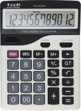 Kalkulator biurowy Toor TR-2235 A jest świetnym wsparciem przy domowych rachunkach. Posiada podstawowe funkcje tego typu urządzeń, dodatkowo możliwość wymazywania ostatnio wprowadzonej liczby. Wyposażony jest w 2 typy zasilania - bateryjne oraz niewielki panel słoneczny. Posiada podstawowe funkcje arytmetyczne, które w zupełności wystarczą w większości zastosowań domowych. Dodatkowa opcja wymazywania ostatniej wprowadzonej liczby pozwala na poprawianie przypadkowych błędów. kalkulator 12-pozycyjny obliczanie procentu liczby klawisz cofania ostatniej cyfry funkcja kasowania ostatniej pozycji funkcja całkowitego kasowania rejestrów i pamięci 2 typy zasilania funkcja pierwiastkowania funkcja pamięci