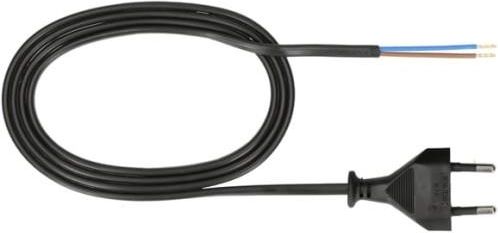 Przewód z wtyczką do gniazdka dwużyłowy 2x0.5 czarny Czarny przewód dwużyłowy OMYp 150cm zakończony fabrycznie wtyczką płaską z możliwością bezpośredniego podłączenia do gniazdka elektrycznego na 230V. Przewód z wtyczką do podłączenia zasilacza Led do gniazdka, podłączenie lampy Led do kontaktu,podłączanie urządzeń elektrycznych do gniazdka. Przewód w podwójnej izolacji. Przewód posiada dwie żyły wewnętrzne każda o przekroju 0.5mm. Zewnętrzna czarna izolacja PVC, pierwsza żyła wewnętrzna brązowa do podłączenia fazy L, druga żyła wewnętrzna niebieska do podłączenia neutral N. Przewód nadaje się do instalacji na napięcie AC od 110V do 300V. Przewód CU o przekroju pojedynczej żyły 0.5mm² w podwójnej izolacji poliwinitowej PVC. Zastosowanie przewodu dwużyłowego z wtyczką: podłączenie zasilacza Led do gniazdka zasilania 230V, podłączenie lamp Led, opraw Led do gniazdka zasilania 230V, podłączenie żarówek Led do gniazdka zasilania 230V.