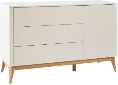 Duża komoda SETH Pinio – elegancja i funkcjonalność w pokoju dziecka - dostępna w kolorze szampańskim Duża komoda z kolekcji SETH łączy nowoczesny design, bezpieczeństwo i praktyczność. Została zaprojektowana z myślą o wygodzie rodziców i komfortowym użytkowaniu przez dziecko, oferując trzy pojemne szuflady oraz drzwi z systemem push-to-open, które gwarantują łatwy i cichy dostęp do przechowywanych rzeczy. Subtelne linie, gładkie fronty i delikatnie zaokrąglone narożniki nadają komodzie elegancki i ponadczasowy charakter. Dodatkowo mebel można zmontować w wersji z drzwiami po lewej lub prawej stronie, a praktyczna, demontowalna nakładka do przewijania zwiększa jego funkcjonalność. Solidna konstrukcja zapewnia trwałość i stabilność, a elegancki szampański kolor wprowadza do wnętrza subtelną lekkość i przytulność. Najważniejsze cechy trzy pojemne szuflady oraz drzwi na prowadnicach i zawiasach push-to-open możliwość montażu drzwi po lewej lub prawej stronie możliwość dokupienia demontowalnej nakładki do przewijania solidna konstrukcja z litego drewna bukowego, malowanej płyty MDF i laminowanej płyty wiórowej zaokrąglone narożniki zapewniające bezpieczeństwo użytkowania malowane bezpiecznymi farbami z atestem, zgodnymi z normą EN 71-3 wykonane z płyt o obniżonej emisji formaldehydu zgodnie z normą EN 16516 minimalistyczny, nowoczesny design z charakterystycznymi nóżkami kolekcji SETH dostępna w eleganckim szampańskim kolorze Wymiary komody SETH Głębokość: 52,8 cm Szerokość: 144,5 cm Wysokość: 90,4 cm Wymiary netto szuflady: 43,4 × 84,8 cm Materiały i wykonanie nogi: lite drewno bukowe lakierowane fronty: malowana płyta MDF korpus: płyta laminowana wykończenie: farby wodne z atestem, zgodne z normą EN 71-3 Styl i dopasowanie Komoda SETH wyróżnia się subtelnym minimalizmem i lekką formą. Gładkie fronty, delikatnie zaokrąglone krawędzie oraz charakterystyczne nóżki nadają meblowi elegancji i lekkości, tworząc harmonijną przestrzeń w pokoju dziecka i doskonale komponując się z innymi meblami z kolekcji SETH. Montaż i dostawa produkt przeznaczony do samodzielnego montażu instrukcja montażu znajduje się w zestawie możliwość dostawy z wniesieniem – cena ustalana indywidualnie (prosimy o kontakt) Dlaczego warto? Komoda SETH to funkcjonalny i elegancki mebel, który łączy praktyczne rozwiązania z nowoczesnym designem. Solidna konstrukcja i przemyślane funkcje zapewniają wygodę użytkowania oraz bezpieczeństwo dziecka, wprowadzając do wnętrza subtelną lekkość i styl. Uzupełnij pokój dziecka kolekcją SETH Sprawdź także pozostałe meble z serii SETH – łóżeczka, szafy i regały – aby stworzyć harmonijną, funkcjonalną i elegancką przestrzeń dla Twojego dziecka.