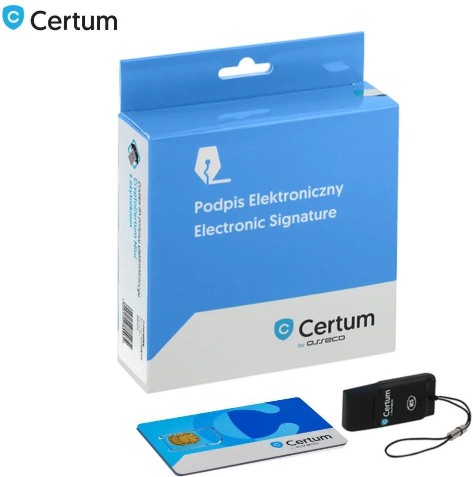 • Podpis kwalifikowany z kartą i czytnikiem Certum Mini ważny 1 rok