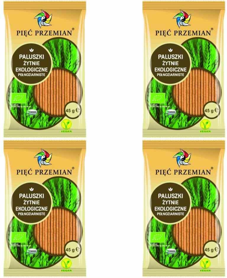 Simpatiko Zestaw 4 x Paluszki Żytnie Pełnoziarniste Bio 45g Pięć Przemian Siechnice