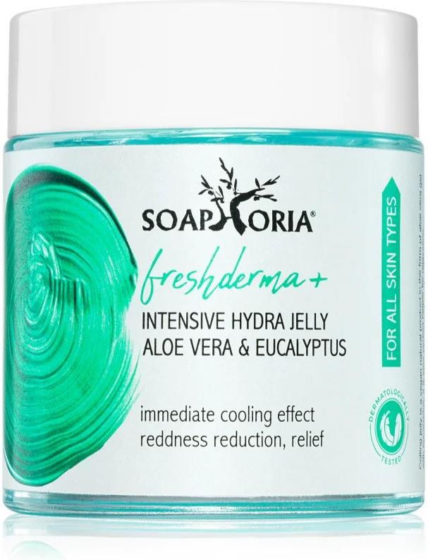 Soaphoria CoolingJelly+ Aloe Vera & Eucalyptus, 100 ml, Żele do ciała dla kobiet, Szukasz produktu do pielęgnacji ciała, który da Twojej skórze to, czego jej brakuje, ale jednocześnie nie pozostawi po sobie nieprzyjemnego uczucia tłustości? Żel do ciała Soaphoria CoolingJelly+ Aloe Vera & Eucalyptus zachwyci Cię swoją wyjątkowo lekką i szybko wchłanialną konsystencją. Będzie pielęgnować ciało z większą lekkością, niż bardzo gęste kremy do ciała, masła czy mleka. Żel zadba o ujędrnienie, zapobiegnie wysuszeniu i zapewni uczucie komfortu, nie pozostawiając tłustego filmu. Właściwości: ma działania kojące regeneruje barierę ochronną skóry przyjemnie odświeża chłodzi i działa kojąco Skład: produkt wegański Sposób użycia: Stosuj w razie potrzeby.