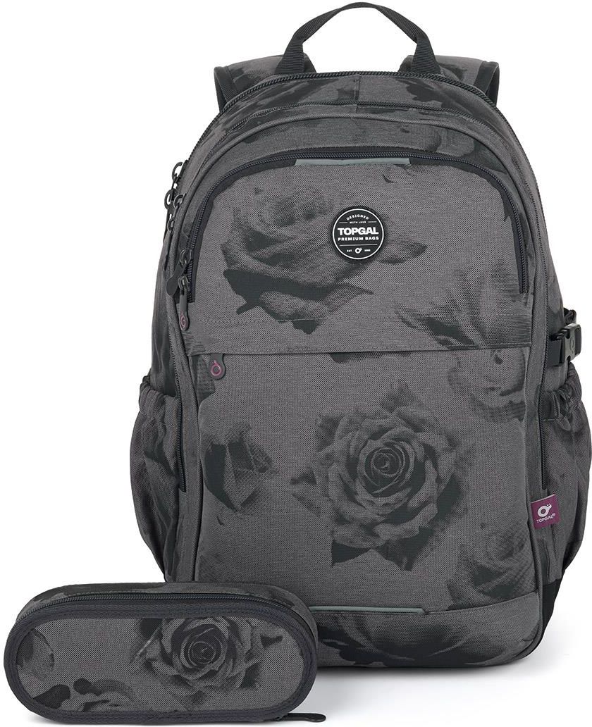 Zestaw dla młodzieży składający się z plecaka i piórnika etui. Komplet szkolny składa się z produktów: RONY 25027 - Plecak młodzieżowy w róże, ETUE 25027 - Piórnik szkolny