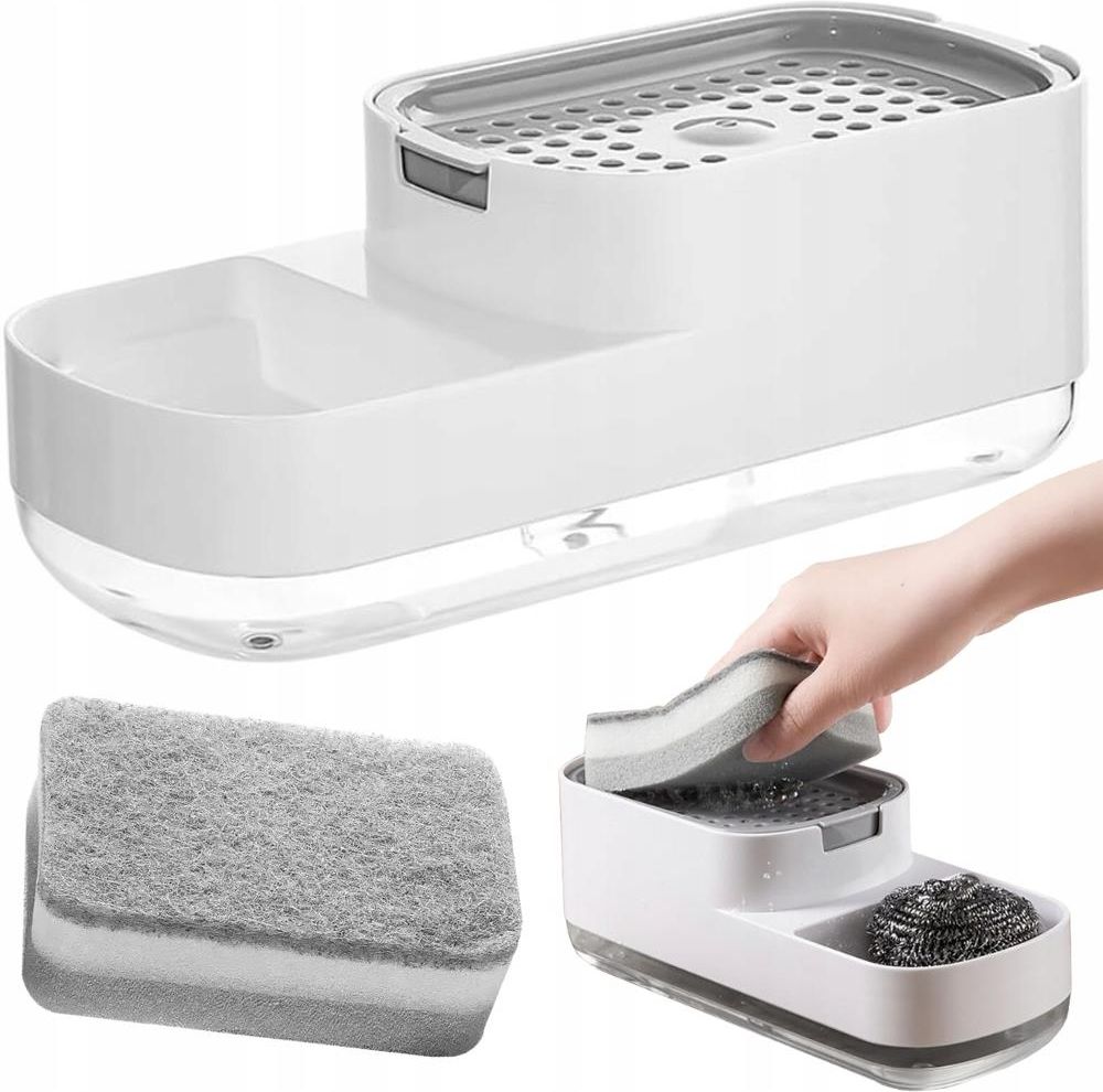 DOZOWNIK NA PŁYN DO NACZYŃ KUCHENNY DO ZLEWU KUCHENNEGO DOZOWNIK GĄBKA Dozownik do płynu do naczyń z gąbką – wygoda i porządek przy zlewie Nowoczesny dozownik do płynu do mycia naczyń to praktyczne rozwiązanie, które ułatwia codzienne zmywanie i utrzymuje porządek przy zlewie. Wystarczy delikatnie docisnąć kratkę gąbką, a odpowiednia ilość płynu zostanie automatycznie wypompowana prosto na jej powierzchnię. To idealne rozwiązanie dla tych, którzy cenią sobie szybkość, wygodę i oszczędność. ? Przemyślana konstrukcja i komfort użytkowania Urządzenie zostało zaprojektowane z myślą o codziennym użytkowaniu – górna kratka odprowadza nadmiar wody z mokrej gąbki do dolnego zbiornika, dzięki czemu gąbka szybciej schnie i dłużej zachowuje świeżość. Dodatkowa przestrzeń po bokach idealnie nadaje się na stalowy zmywak czy szczotkę do mycia garnków. Dozownik jest wykonany z wysokiej jakości tworzywa sztucznego, odpornego na wilgoć i łatwego w czyszczeniu. Elegancka forma i neutralna kolorystyka sprawiają, że świetnie komponuje się z nowoczesnymi kuchniami. SPECYFIKACJA TECHNICZNA Kod produktu: 24599 Wykonana z tworzywa sztucznego Łatwy w czyszczeniu Wygodne dozowanie płynu Dwie przegródki Wymiary: 23 x 10 x 8,5 cm DOSTĘPNE KOLORY Wyboru koloru prosimy dokonać wyłącznie w formularzu zakupowym (w trakcie składania zamówienia). W przypadku braku informacji - wyślemy kolor losowy. Czarny Biały ZESTAW ZAWIERA Fabrycznie nowy dozownik Gąbka Oryginalne opakowanie
