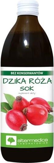 Kompozycja soku z owoców dzikiej róży i witaminy C. Stanowi doskonały dodatek do codziennej diety dla osób dbających o zdrowie. Owoce dzikiej róży przyczyniają się do wzmocnienia organizmu i usprawnienia pracy układu odpornościowego. To bogate źródło substancji wspierających prawidłowe funkcjonowanie układu odpornościowego. Witamina C działa jako przeciwutleniacz, dzięki czemu pomaga chronić tkanki przed szkodliwym wpływem wolnych rodników oraz wspomaga działanie układu odpornościowego. Zawartość dziennej porcji (50ml) 50 ml soku z owoców dzikiej róży 120 mg witaminy C (150% *) * - % RWS referencyjnych wartości spożycia Składniki sok z owoców dzikiej róży (Rosa canina l) odtworzony z zagęszczonego soku z dzikiej róży, kwas L - askorbinowy - źródło witaminy C. Zalecane spożycie 25 ml soku pół godziny przed posiłkiem. Nie należy przekraczać zalecanej do spożycia dziennej porcji (50ml). Przechowywać szczelnie zamknięte, w temperaturze pokojowej w suchym miejscu. Chronić przed bezpośrednim działaniem promieni słonecznych. Po otwarciu przechowywać w lodówce do 21 dni. Ze względu na zawartość naturalnych składników - kolor, zapach i smak poszczególnych partii mogą się różnić. Nie ma to żadnego wpływu na jakość i działanie produktu. Może wytrącać się naturalny osad. Przed użyciem wstrząsnąć. Produkt pasteryzowany. Dodatkowe informacje Nie należy przekraczać dziennej zalecanej porcji do spożycia. Zrównoważony sposób żywienia i prawidłowy tryb życia są ważne dla prawidłowego funkcjonowania organizmu. Suplement diety nie może być stosowany jako substytut (zamiennik) zróżnicowanej diety. Przechowywać w suchym i chłodnym miejscu, niedostępnym dla małych dzieci. Ważne informacje dotyczące suplementu Nie należy przekraczać dziennej zalecanej porcji do spożycia. Zrównoważony sposób żywienia i prawidłowy tryb życia są ważne dla prawidłowego funkcjonowania organizmu. Suplement diety nie może być stosowany jako substytut (zamiennik) zróżnicowanej diety. Przechowywać w suchym i chłodnym miejscu, niedostępnym dla małych dzieci. Producent Altermedica ul. SPOKOJNA 11 34-300 ŻYWIEC ŚLĄSKIE