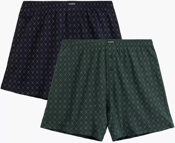Bokserki Męskie 2MBX-077 Luźne ● dwie w geometryczny wzór w kratkę, zapakowane w dwupaku ● miękka, nieuciskająca guma wewnętrzna z logo Atlantic ● stworzone z myślą o codziennym ruchu i swobodzie ● luźny krój i uniwersalny charakter ● mają średniej wysokości talię, standardowej długości nogawki …