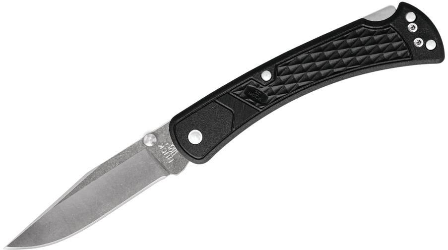 Nóż Buck Slim Hunter - model ten posiada rękojeść wykonaną z wytrzymałego tworzywa nylonowego łączonego z włóknem szklanym. Stal w tym modelu to sprawdzona 420HC wysoce odporna na korozję, łatwa w ponownym ostrzeniu. Ostrze ClipPoint charakteryzuje się większą zdolnością do przebijania, dodatkowo jest złotym środkiem między pozostałymi rodzajami głowni dlatego stosowane jest zarówno w nożach myśliwskich, bojowych jak i roboczych. Dodane zostały kołki ułatwiające rozkładanie noża. Blokada noża typu BackLock działa poprzez wciśnięcie 'grzbietu i mechanicznego złożenia ostrza do wewnętrznej części rękojeści. 110 Slim oferuje wszechstronność w codziennym użytkowaniu dzięki rękojeściom z teksturą i wysuwanym ostrzem jedną ręką.Wyśmienicie sprawdzi się jako narzędzie do EDC oraz Survivalu. Dodatkowo są stosunkowo lekkie oraz wygodne w przenoszeniu. Kraj Produkcji USA