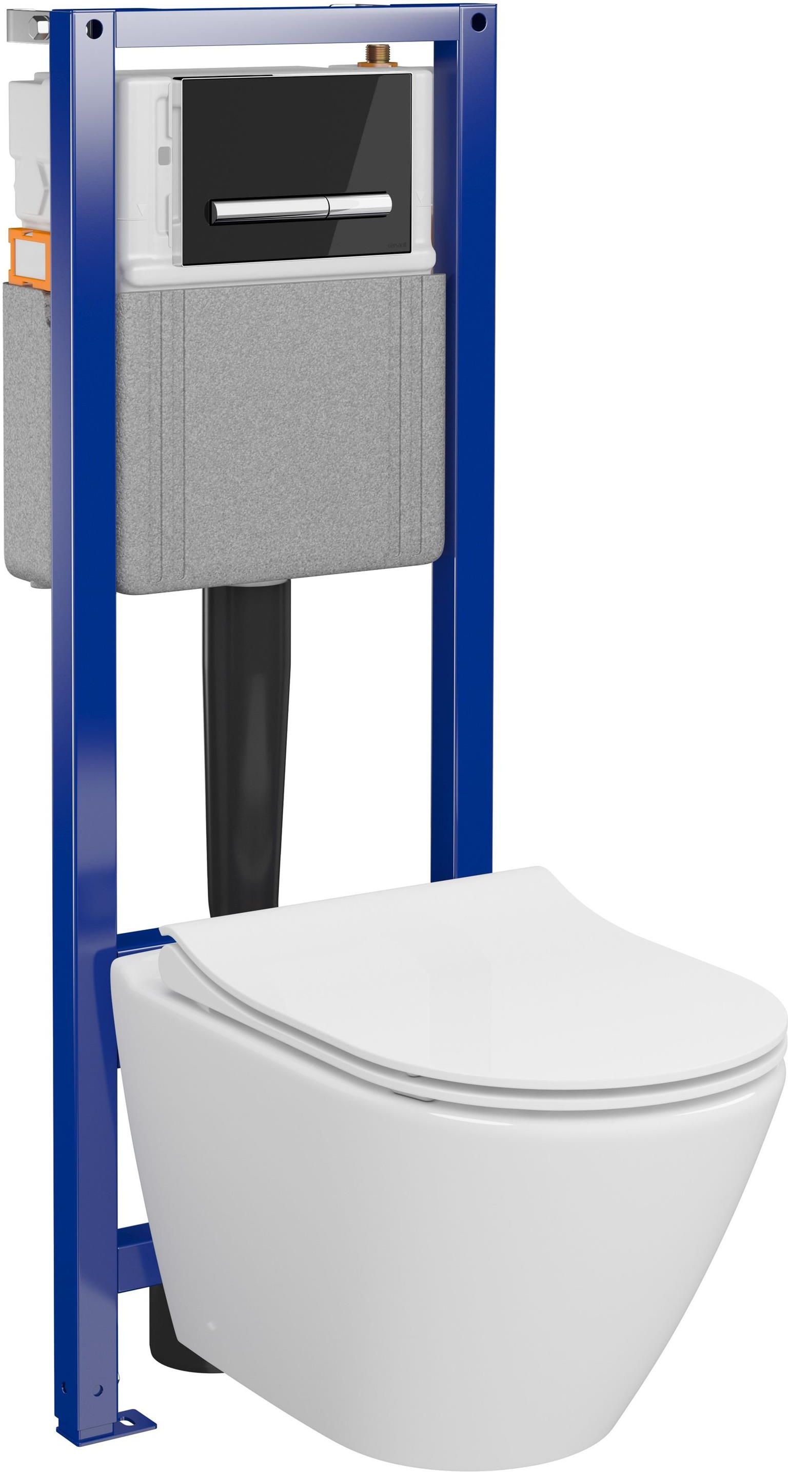 Zestaw podtynkowy WC Cersanit SYSTEM 40 MECH / CITY OVAL / PILOT / S4005-017 przycisk szkło czarne Zestaw Miska WC CITY OVAL z deską SLIM wolnoopadającą, wypinaną przyciskiem Stelaż podtynkowy SYSTEM MECH 40 Przycisk spłukujący PILOT w kolorze czarne szkło Miska Rodzaj: wisząca Kolor: biała …