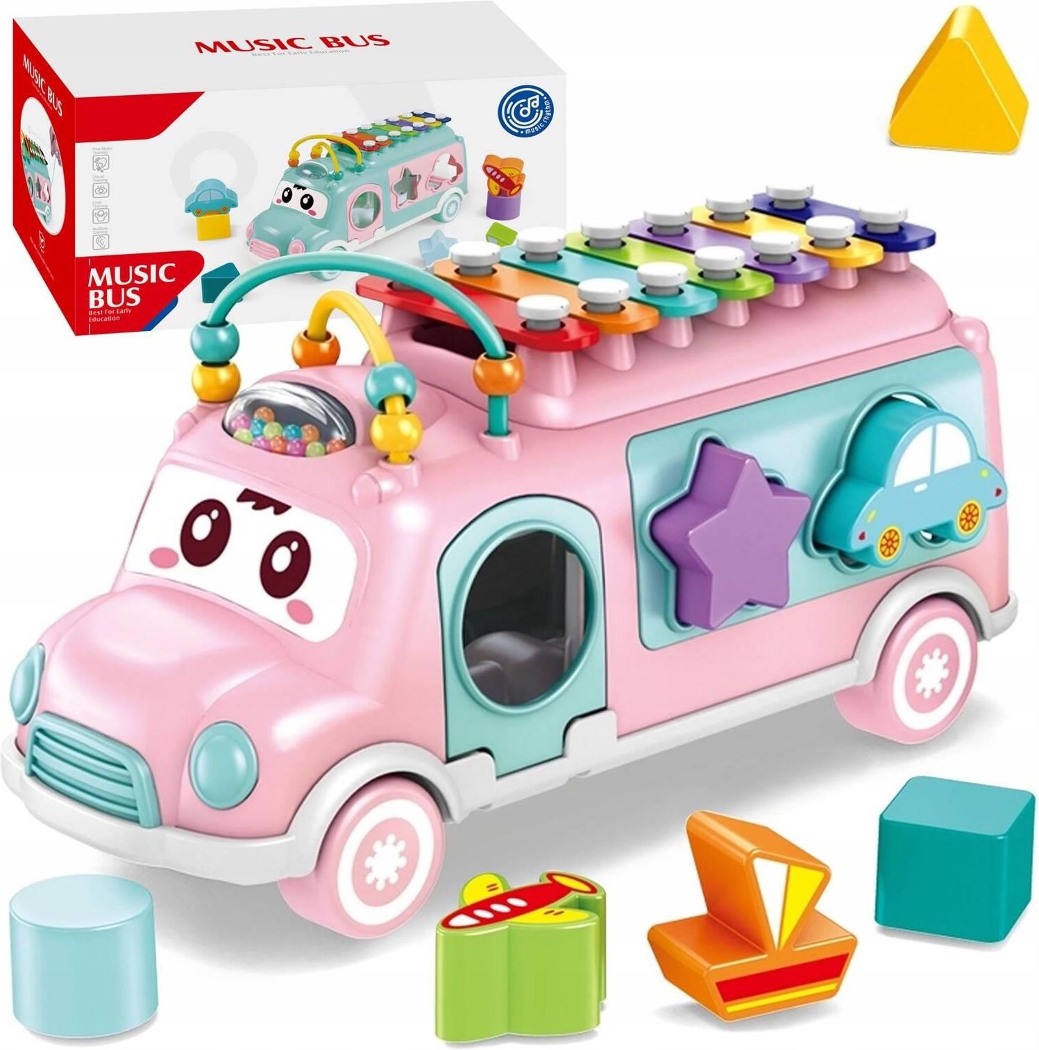 Duży Autobus Muzyczny Bus Dla Dzieci Sorter Klocków Cymbałki Grzechotka 5W1 Siedlce