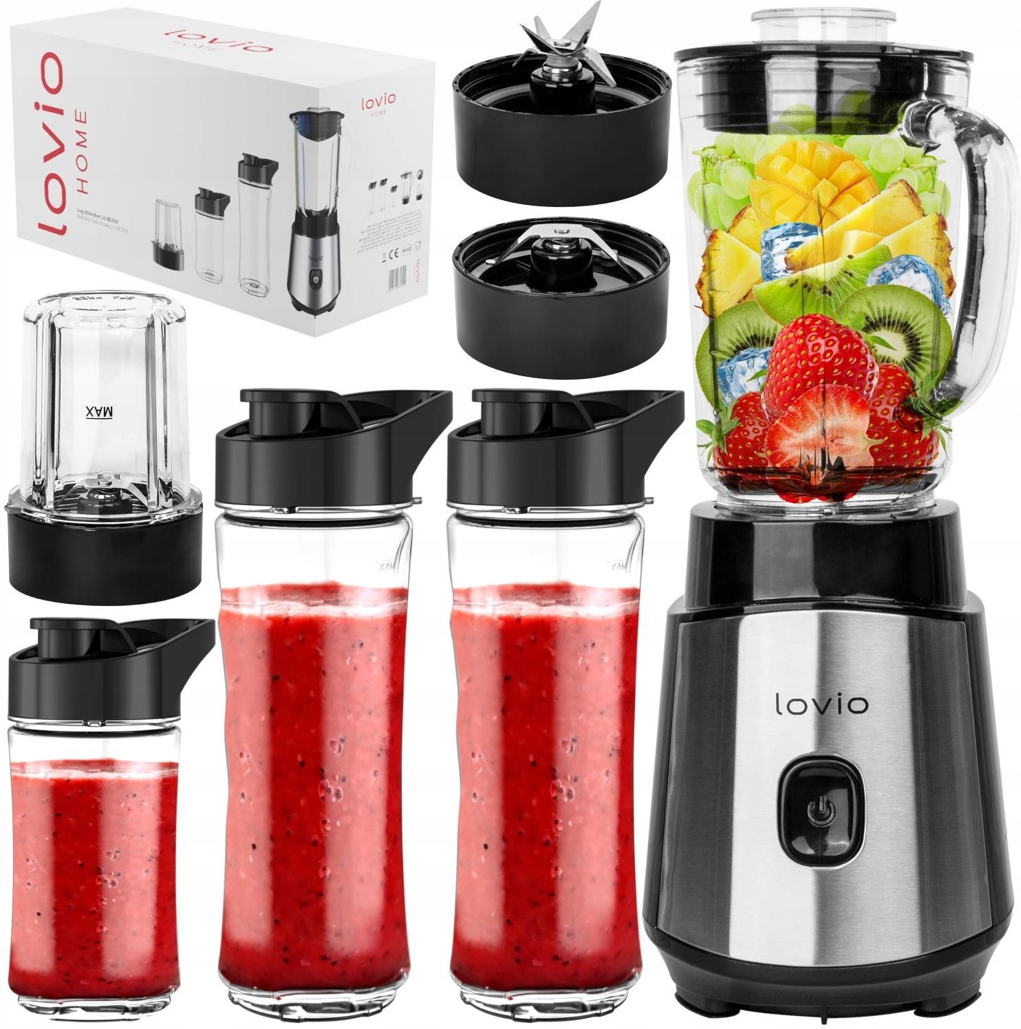 Blender kielichowy szklany do smoothie młynek do kawy, pieprzu i soli 900W 0,6 l LOVIO Najważniejsze cechy: ✔️ Wydajny i niezawodny silnik o mocy maksymalnej 900W (znamionowa 500W) ✔️ Kompaktowy rozmiar ✔️ Ostrze z sześcioma łopatkami tnącymi wykonane ze stali nierdzewnej ✔️ Szklany kielich o pojemności 600ml ✔️ W zestawie 3 butelki wykonane z tritanu, niezawierającego BPA ✔️ Praktyczny młynek do kawy, przypraw czy orzechów ✔️ Zabezpieczenie przed przegrzaniem i nieprawidłowym montażem ✔️ Antypoślizgowe nóżki zapewniające maksymalną stabilność ✔️ Solidna obudowa z przednim panelem ze stali nierdzewnej ✔️ Możliwość mycia w zmywarce plastikowych i szklanych elementów ✔️ Certyfikaty: CE (Produkt spełniający wymogi UE dotyczące zdrowia, bezpieczeństwa i ochrony środowiska), LFGB (Produkt dopuszczany do kontaktu z żywnością), RoHS (Unijna dyrektywa, mająca na celu ograniczenie ilości niebezpiecznych substancji przenikających do środowiska). Zestaw zawiera: ✔️ Blender ✔️ Szklany kielich o pojemność 600ml ✔️ Butelka 570ml z ustnikiem wykonana z tritanu x2 ✔️ Butelka 400ml z ustnikiem wykonana z tritanu ✔️ Wymienne ostrze do butelek ✔️ Młynek do kawy i orzechów Niezawodny i skuteczny Blender kielichowy LOVIO o mocy 500W zapewnia niezawodność i skuteczność w każdym zastosowaniu. Jednoprzyciskowe sterowanie pulsacyjne ze wskaźnikiem LED sprawia, że obsługa jest prosta i intuicyjna. Ostrza ze stali nierdzewnej gwarantują efektywne mieszanie i kruszenie składników. Ten blender kielichowy łączy w sobie moc, funkcjonalność i estetykę, stanowiąc niezastąpione narzędzie w kuchni. Ostrza ze stali nierdzewnej Ostrze blendera kielichowego charakteryzuje się czterema łopatkami tnącymi, wykonanymi ze stali nierdzewnej, co gwarantuje nie tylko wyjątkową wytrzymałość, ale także efektywne kruszenie i mieszanie składników. Dzięki tej zaawansowanej konstrukcji ostrza, użytkownicy mogą cieszyć się doskonałą precyzją i szybkością przy przygotowywaniu smoothie, koktajli czy innych potraw. Szklany kielich o pojemności 600 ml Szklany kielich o pojemności 600ml oferuje wystarczającą przestrzeń na przygotowanie zdrowych smoothie i koktajli. Trwały i przejrzysty materiał zapewnia łatwą kontrolę nad procesem blendowania, jednocześnie dodając estetyczny element do kuchennego wyposażenia. Szczelna przykrywka i uchwyt zapewnią wygodę użytkowania. 3 butelki z tritanu w zestawie Trzy butelki z wygodnym ustnikiem i uchwytem, wykonane z tritanu pozbawionego BPA. 2 Butelki o pojemności 570 ml i jedna o pojemności 400 ml. Dzięki tym funkcjonalnym butelkom, możesz cieszyć się nie tylko zdrowymi napojami, ale także wygodnym korzystaniem z ich szczelnego ustnika, idealnego dla aktywnego trybu życia. Wygoda i bezpieczeństwo Blender kielichowy został wyposażony w inteligentny system zabezpieczeń, który chroni przed przegrzaniem i nieprawidłowym montażem. Dzięki temu możesz korzystać z urządzenia z pełnym spokojem, mając pewność, że bezpieczeństwo i efektywność działania są priorytetem. Funkcja mielenia Praktyczny młynek do kawy i orzechów sprawia, że ten blender staje się wszechstronnym narzędziem kuchennym. Pozwala on na łatwe mielenie kawy i wszelkiego rodzaju orzechów. To wszechstronne rozszerzenie funkcjonalności blendera, pozwalające na przygotowanie nie tylko zdrowych napojów, ale także aromatycznych kaw oraz posiekanych orzechów do różnorodnych potraw. MANTA korzystając z 25 letniego doświadczenia i wiedzy stworzyła markę LOVIO HOME, która zgodnie z ideą marki Makes You Happy uszczęśliwia jej użytkowników. Połączenie inteligentnych rozwiązań , komfortu użytkowania i przemyślanego designu dostarcza radość i ułatwia życie na co dzień. Ponadczasowy design idealnie komponuje się z każdym wystrojem wnętrz, a wielofunkcyjność i innowacyjność sprzętu jest źródłem inspiracji do kulinarnych pasji. LOVIO HOME tworzy piękne doświadczenia. Pełna linia małych i dużych urządzeń gospodarstwa domowego, wyróżnia wyjątkowa stylistyka, dbałość o każdy szczegół, a nowoczesna technologia zapewnia najlepsze rezultaty. LOVIO HOME uszczęśliwi Ciebie i wzbogaci Twój dom.