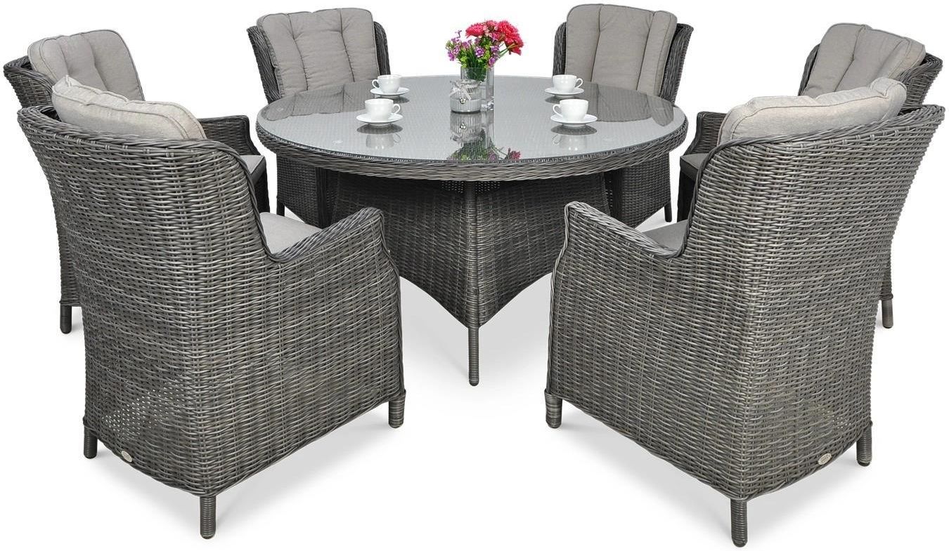 Opis:Zestaw technorattanowy Ravena Dark Grey doskonale pokazuje, jak obecnie wyglądają ekskluzywne meble ogrodowe. Eleganckie i komfortowe, a zarazem niezwykle trwałe. Zestaw Ravena składa się z 7 części: sześciu foteli i dużego, okrągłego stołu. Wszystkie meble z technorattanu wyróżnia wygoda - i nie inaczej jest w tym przypadku. Przyjemna w dotyku plecionka do złudzenia przypomina naturalny rattan, z tą różnicą, że nie wymaga aż takiego wysiłku przy pielęgnacji. Zestaw technorattanowy Ravena Dark Grey przez długie lata pozostaje całkowicie niewrażliwy na wpływ czynników pogodowych. Opady atmosferyczne czy długotrwałe pozostawianie mebli na słońcu pozostaje bez widocznego śladu lub uszczerbku. Fotele i stół z zestawu Ravena łatwo umyć samą wodą, do tego cały czas prezentują ładne odcienie koloru - nawet po wielu sezonach intensywnego użytkowania. A nie da się ukryć, że meble ogrodowe tak wysokiej klasy zazwyczaj eksponuje się bardzo często, nie tylko na wyjątkowe okazje. Zestaw technorattanowy Ravena znakomicie sprawdza się zarówno podczas wystawnych garden party, jak też nieco mniej formalnych spotkań w gronie najbliższej rodziny. Poza tym te meble z technorattanu nadają się nie tylko do ogrodu - równie dobrze mogą służyć w jadalni lub salonie. To wszystko zasługa perfekcyjnego wykonania oraz zastosowania pierwszorzędnych materiałów. Obok wspomnianego wcześniej technorattanu, zestaw Ravena wykorzystuje nieprzeciętne właściwości aluminium. Mocny stelaż zapewnia meblom trwałość, ale też tak ważną na miękkim podłożu stabilność. Niewątpliwie zestaw technorattanowy Ravena Dark Grey stanowi interesującą propozycję dla wszystkich, którzy oczekują najwyższej jakości i szukają mebli ogrodowych z górnej półki. Cechy: w skład zestawu wchodzi 6 wygodnych foteli oraz duży, okrągły i efektowny stół stelaż wykonany jest z aluminium malowanego proszkowo, co zapewnia stabilność i lekkość konstrukcji oraz całkowitą odporność na rdzę wyplot to najwyższej jakości technorattan w kolorze Dark Grey, który doskonale imituje naturalny rattan poduszki posiadają zamek błyskawiczny, umożliwiający szybkie i wygodne zdjęcie tapicerki stół posiada ozdobny wyplot, widoczny pod blatem z hartowanego szkła o grubości 5mm całość jest bardzo łatwa do utrzymania w czystości, do pielęgnacji wystarczy tylko wilgotna ściereczka dzięki użyciu materiałów najwyższej jakości (technorattan, aluminium) nasz zestaw oznacza się maksymalną trwałością, odpornością na warunki atmosferyczne i promienie UV łatwy i bezproblemowy montaż stołu, fotele w stanie zmontowanym Wymiary: fotel: szerokość - 65 cm, głębokość - 74 cm, wysokość - 95 cm stół: średnica - 150 cm, wysokość - 75 cm