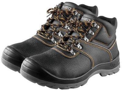 Trzewiki skórzane S3, stalowy podnosek, stalowa wkładka antyprzebiciowa, 82-166 NEO to wygodne i specjalistyczne obuwie robocze, przeznaczone do prac budowlanych, warsztatowych lub do użytku w leśnictwie. Wykonane zostały w klasie S3. Wyposażone są w skórzaną cholewkę z wytłaczanej dwoiny, dobrze izolującą stopę od podłoża. Na trwałość obuwia wpływają również metalowe szlufki, a także podwójne i potrójne szwy.