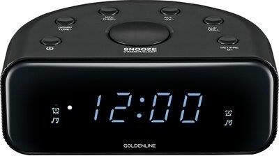 Radiobudzik GOLDENLINE RCL200 oferuje duży, czytelny wyświetlacz LED, radio FM z pamięcią 10 stacji, 2 niezależne alarmy z funkcją drzemki oraz automatyczne wyłączanie radia. Urządzenie posiada intuicyjny panel sterowania, zasilanie sieciowe z podtrzymaniem ustawień na baterie AAA (brak w zestawie).