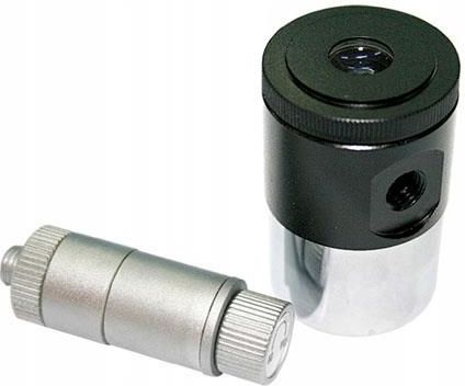Okular Sky-Watcher podświetlany 12,5mm 1,25" Okular podświetlanym krzyżem o ogniskowej 12,5 mm i własnym polu widzenia 40 idealnie nadający się do precyzyjnego ustawiania teleskopów wyposażonych w system Go-To. W systemach tych ważną role w początkowym etapie ustawienia ma precyzyjne ustawienie położenia alingowanej gwiazdy w centrum pola widzenia. Dzięki zastosowanemu podwójnemu krzyżowi z podświetleniem, jest to bardzo proste i co najważniejsze precyzyjne.