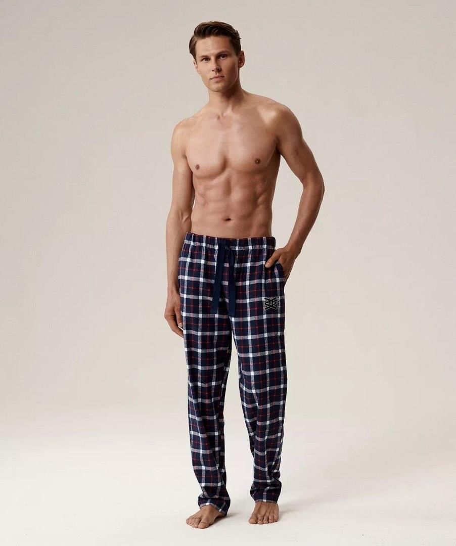 Spodnie Piżamowe Flanela NMB-045 ● długie, ciepłe, flanelowe spodnie do spania i domowego relaksu ● w fantastycznych kolorach i z kraciastym wzorem ● bawełna flanelowa jest miękka i przyjemna w dotyku ● uniwersalny krój ● bok ozdobiony małym haftem ● praktyczne boczne kieszenie ● w pasie gumka obszyta dzianiną i sznurek do regulacji